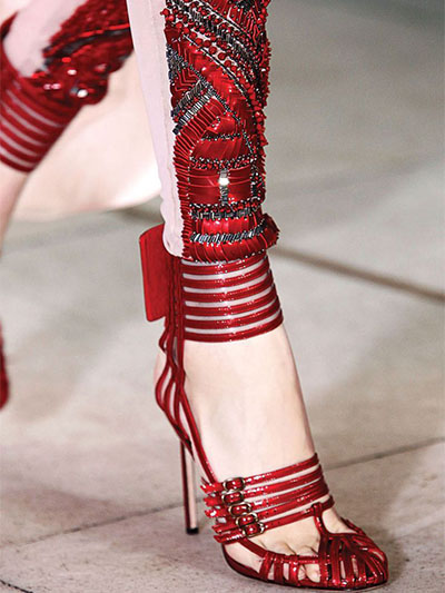 O vermelho aparece como o fogo da juventude audaz, utilizado como cor total num look rebelde e despreocupado.